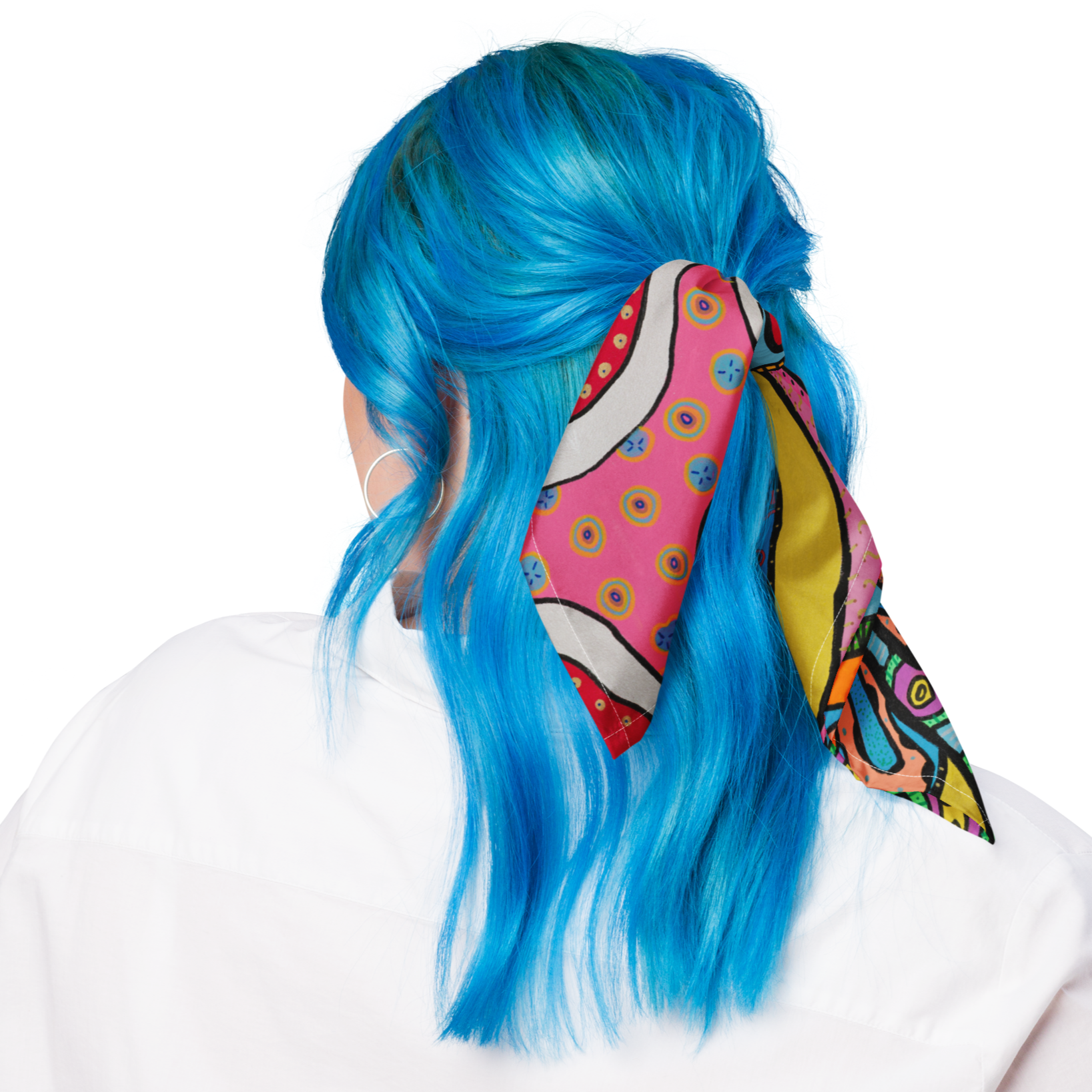 Lightweight and versatile, this bandana is made from breathable recycled fabric. Use it as a headband, scarf, or bag accessory.