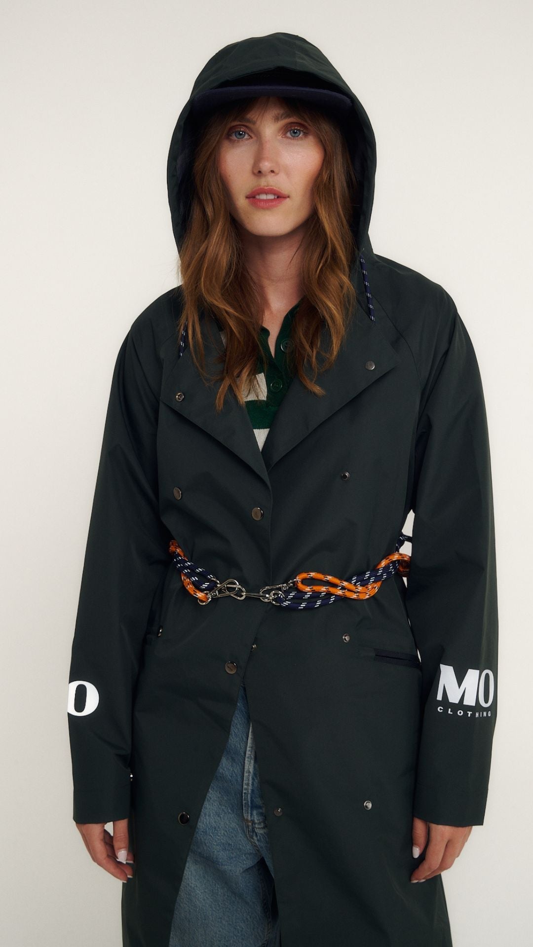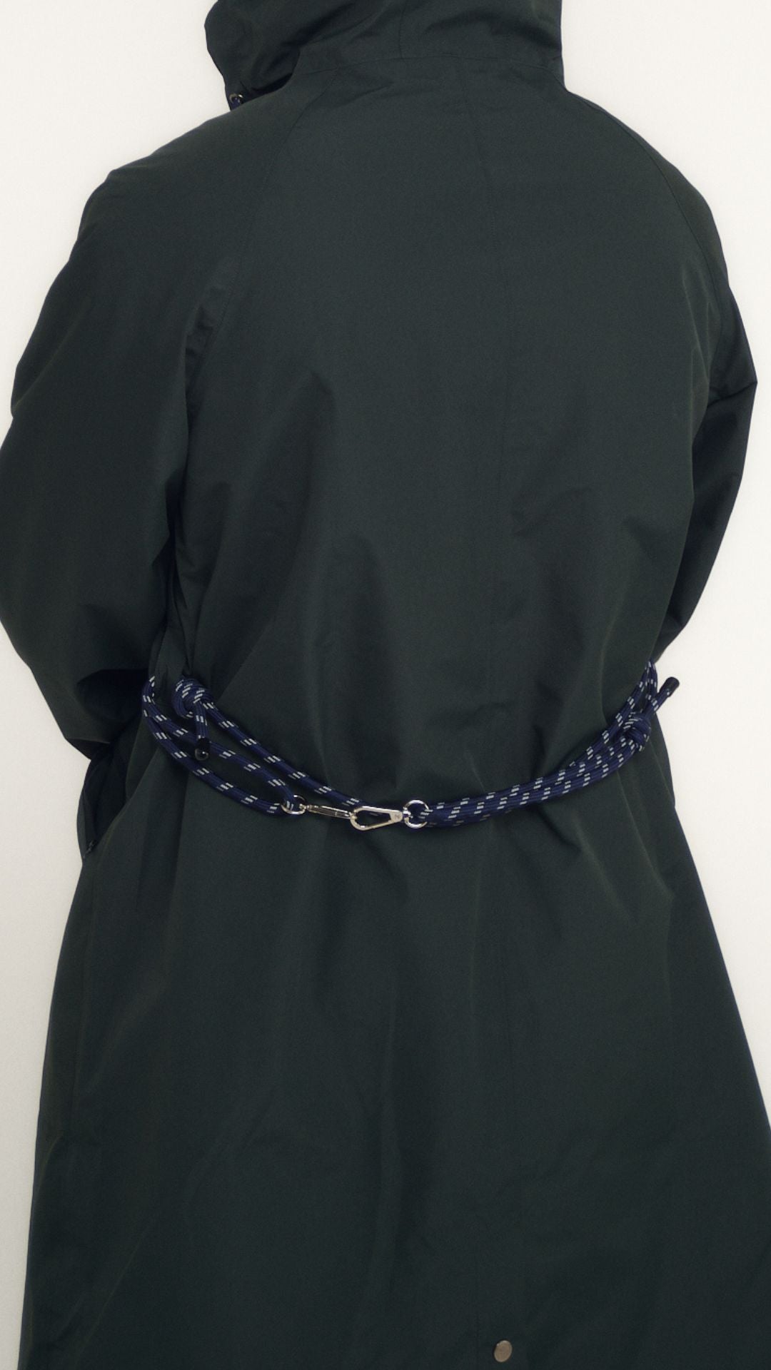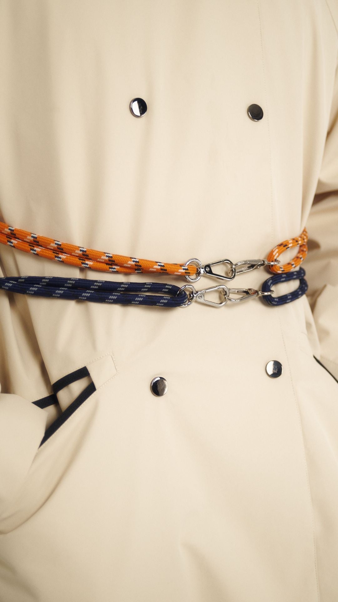 La ceinture ANNY 001. offre un moyen simple et original de cintrer votre veste. Avec ses deux mousquetons et ses nœuds coulissants, elle s'ajuste facilement à votre tour de taille. Elle est parfaite pour accompagner votre parka imperméable GAB 001. et se rend toujours utile comme un cordon de secours pour personnaliser un sac par exemple.