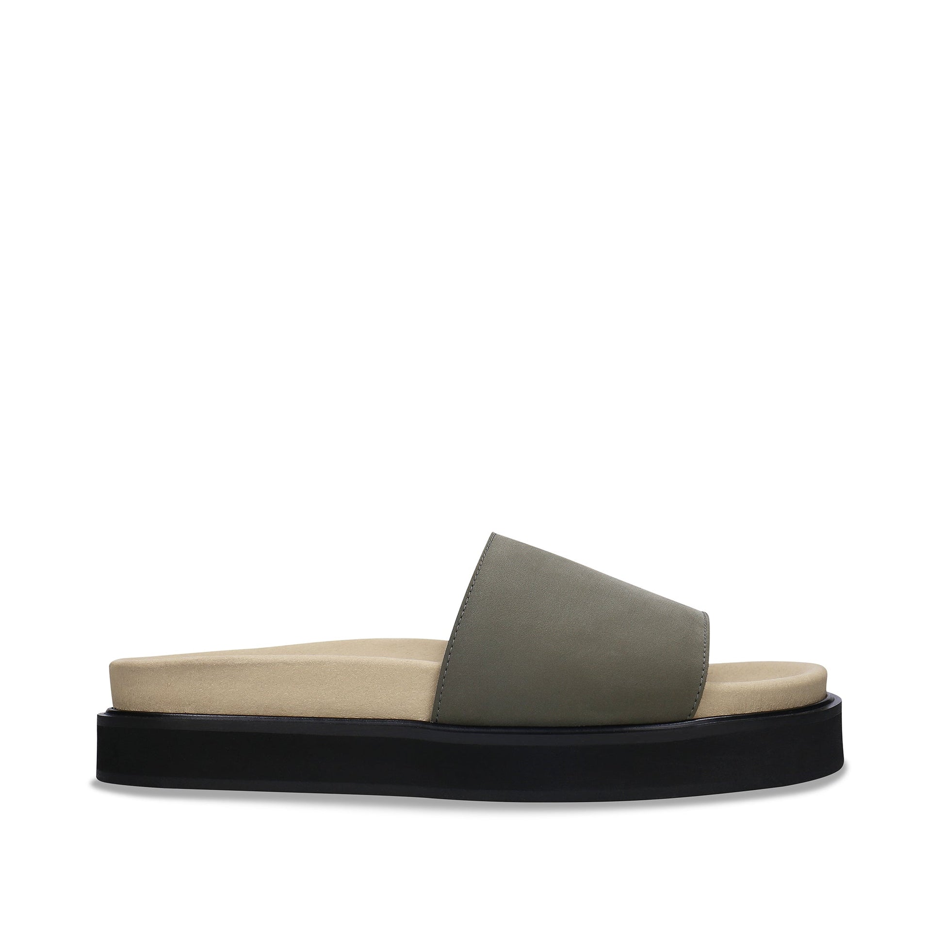 Okina Green vegan sandals are handcrafted in Portugal with eco-friendly microfibers in a bold green finish. Featuring a 2 cm platform, a wide 8 cm strap at the front, and a 1 cm sole, these slip-ons blend comfort with contemporary style. Perfect for modern, sustainable wardrobes seeking a vibrant, conscious choice.