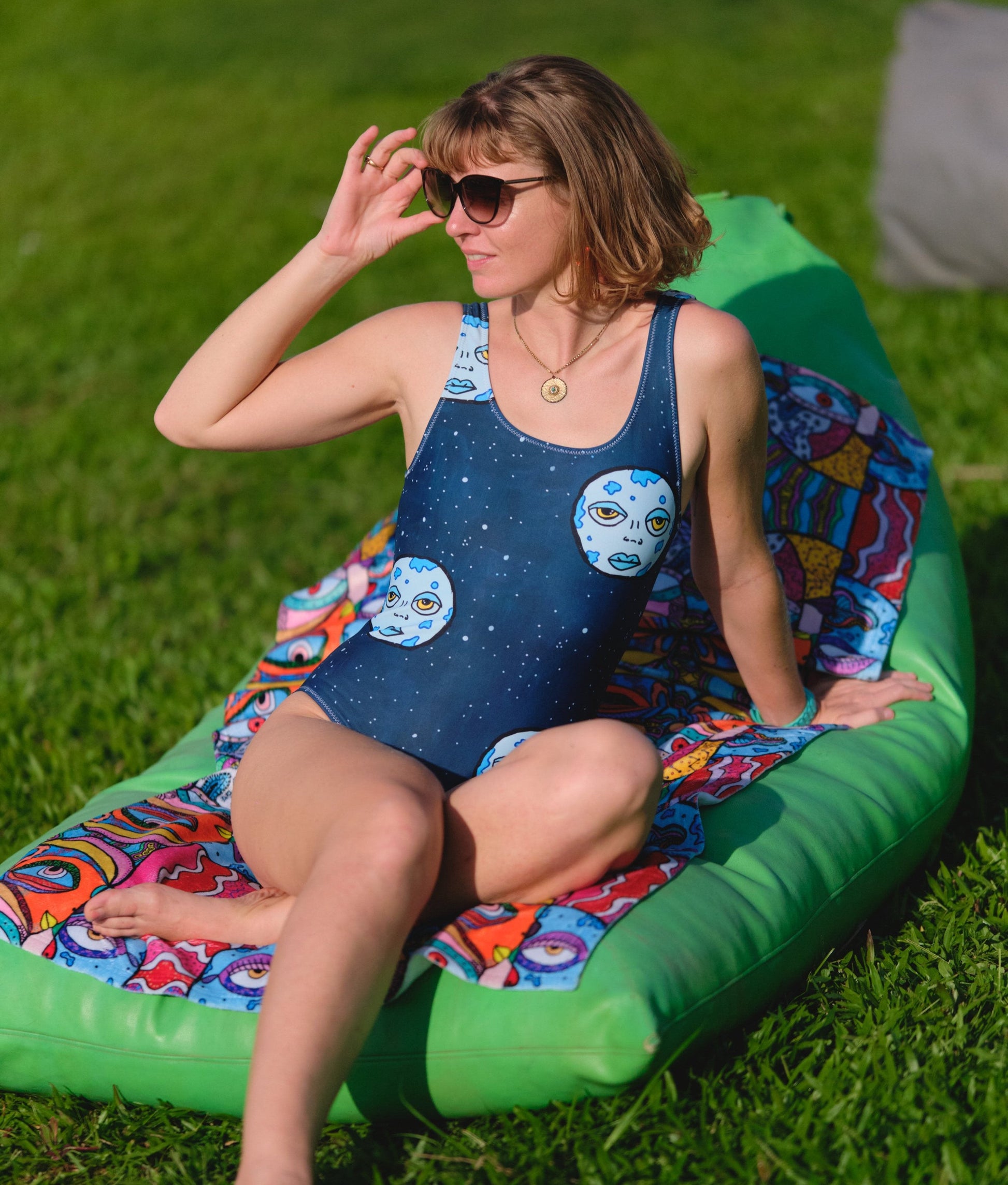 Described as "the comfiest artwork" by those who wear it, this piece features a vibrant design inspired by an Amé Kunty painting.