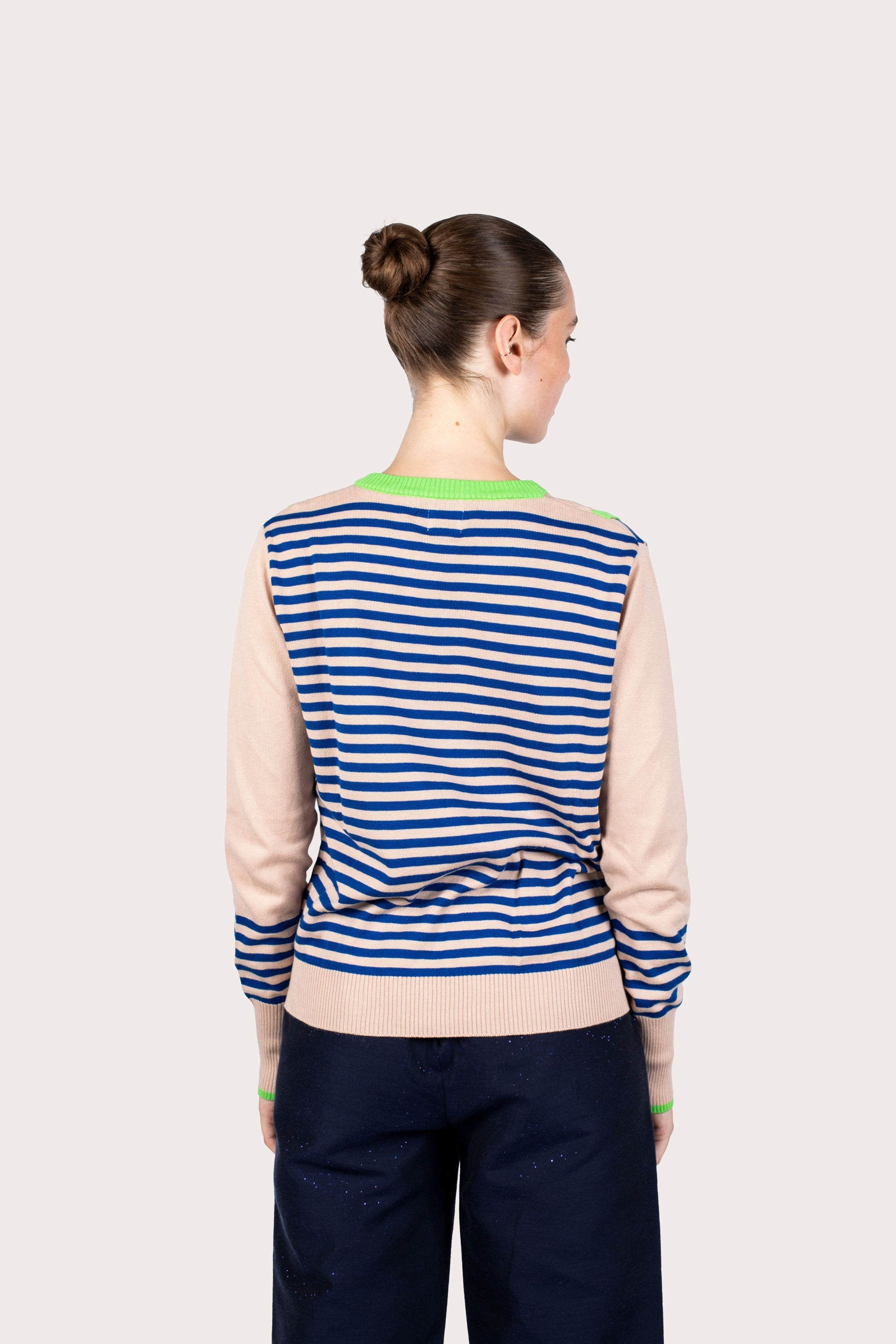 Le Pull Fred Sand, une réinterprétation éco-responsable de la marinière française, se pare de deux tons de vert. Cette pièce unisexe, confectionnée en Italie, incarne parfaitement l’idée que la mode éthique peut être à la fois moderne et respectueuse de l’environnement.