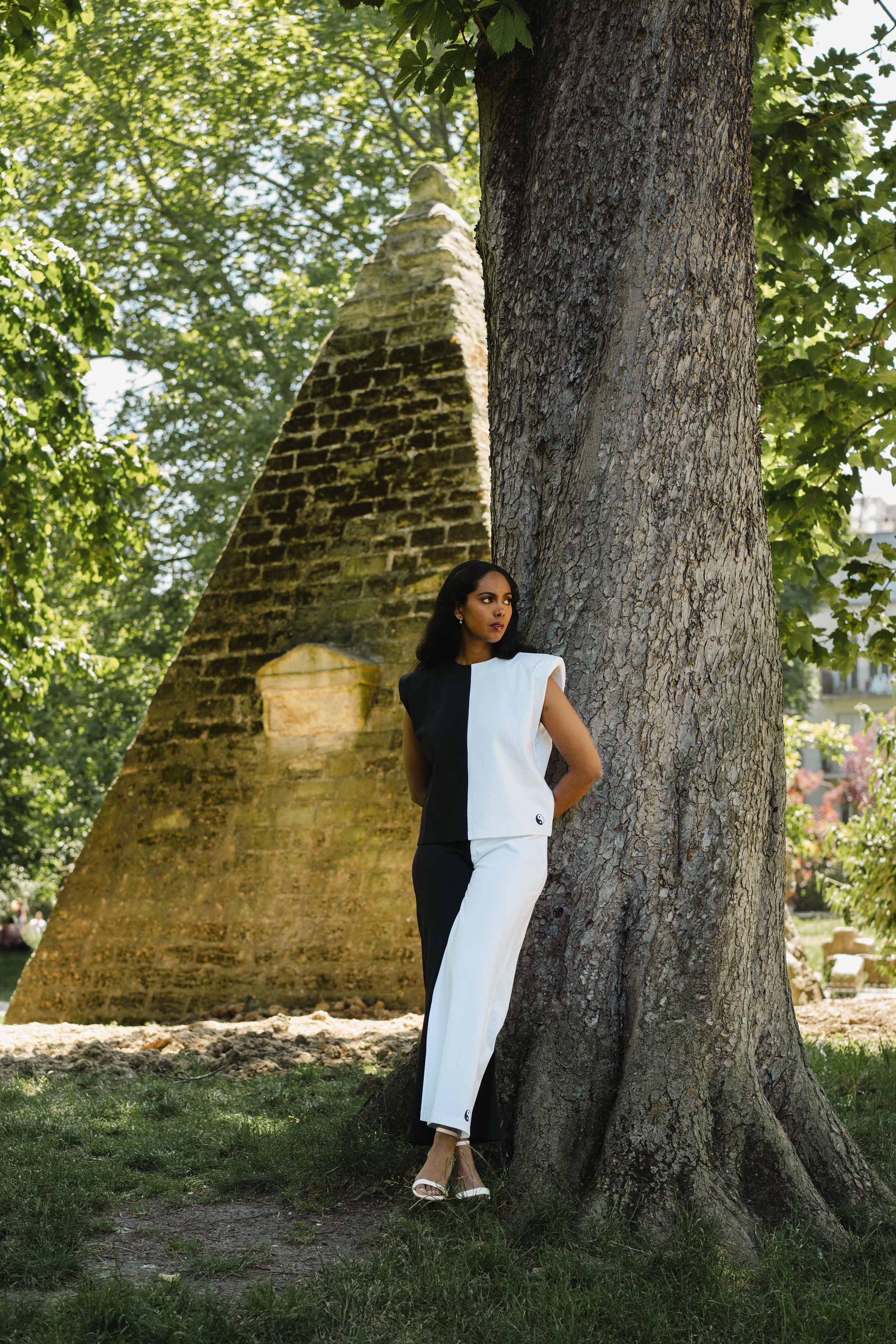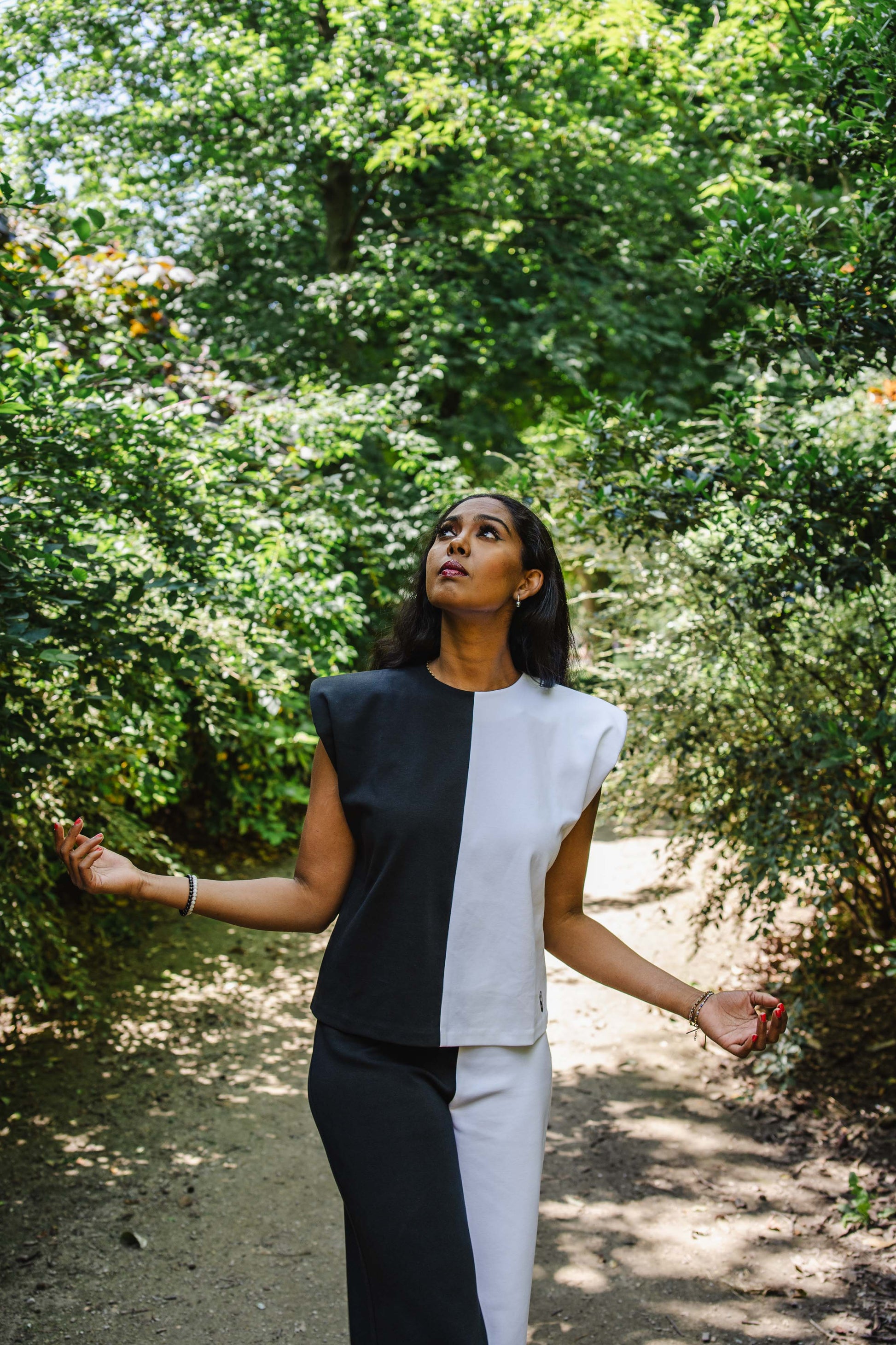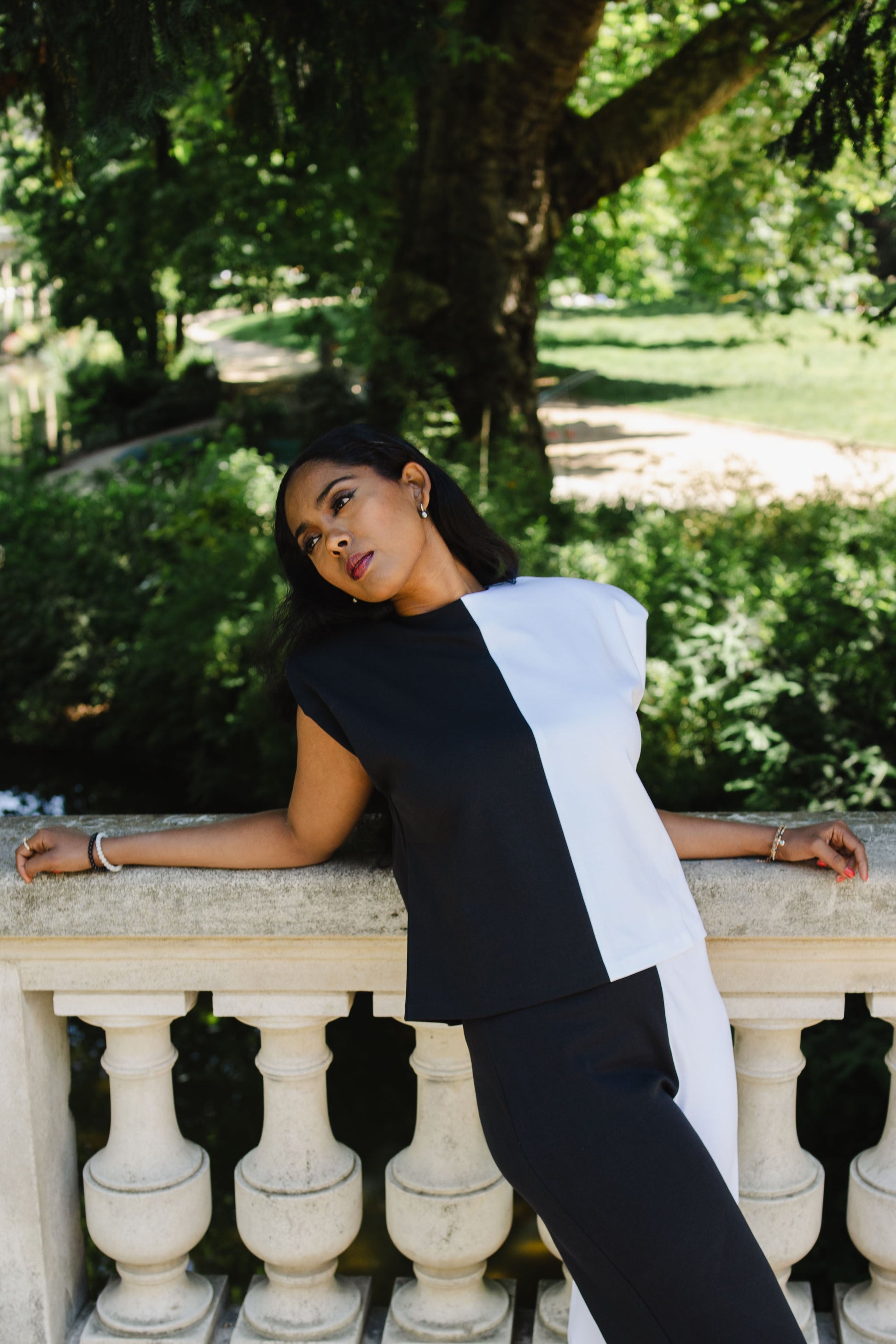 Top bicolore sans manches à épaulettes en 100% coton bio