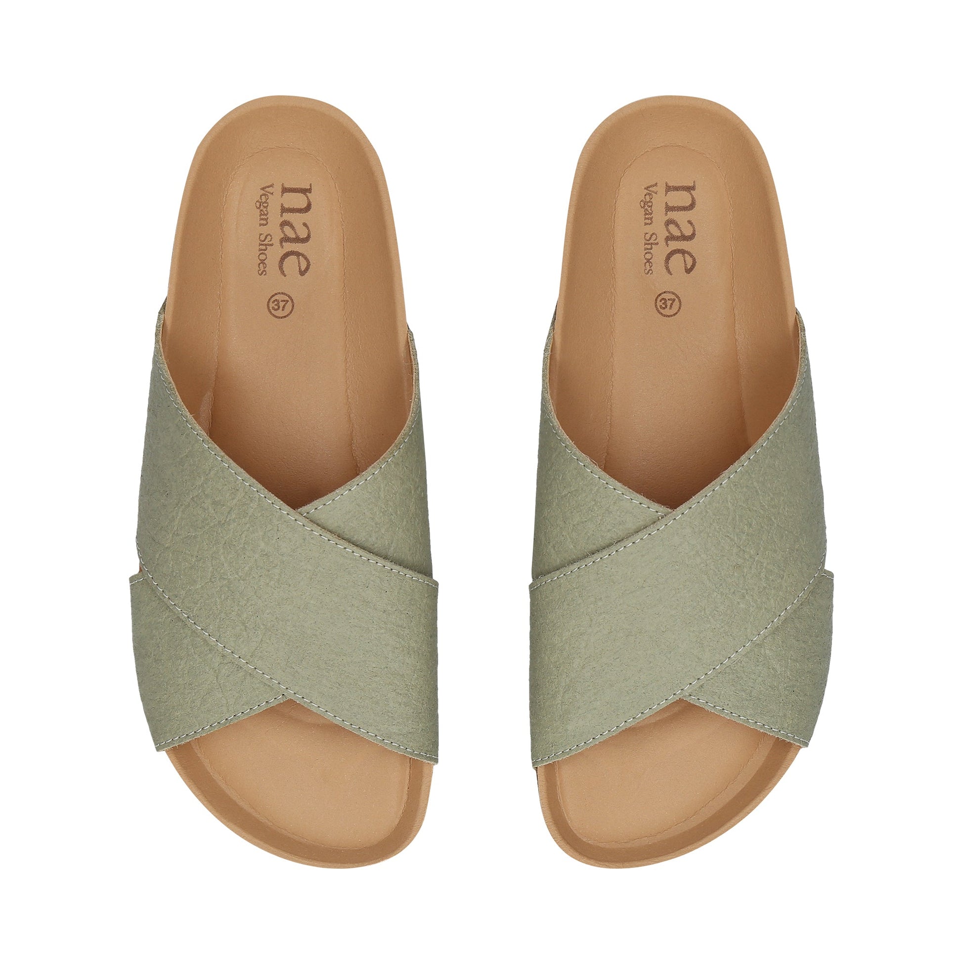 Tupai Green vegan sandals feature a bold criss-cross design crafted from Piñatex, with straps measuring 5.5 cm (2.17 inches) wide. The anatomically shaped cork insole provides exceptional comfort, while the durable sole, made from recycled tires, ensures eco-friendly durability. These sandals are perfect for conscious fashion enthusiasts seeking a stylish yet sustainable option.
