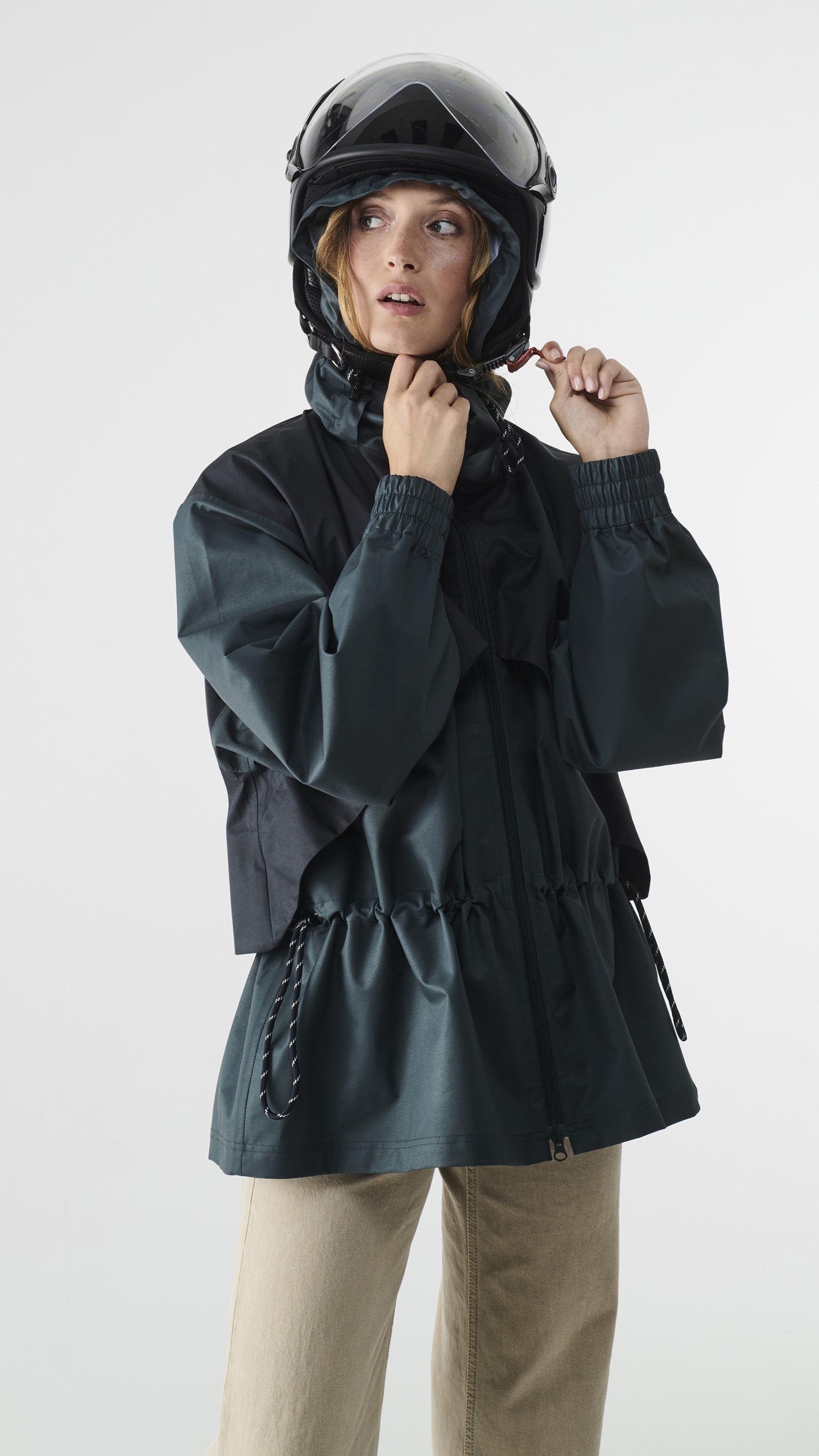 La veste imperméable respirante SASHA 001 est pensée pour les cyclistes urbaines qui ne veulent pas choisir entre confort, protection et liberté de mouvement. Avec sa coupe oversize, elle se superpose facilement à une sous-couche thermique pour suivre les variations de température. Son textile technique vous garde au sec sans surchauffe, sa capuche se dissimule, et son format compact s’attache directement au guidon. Prête à suivre tous vos déplacements, même les plus imprévus.